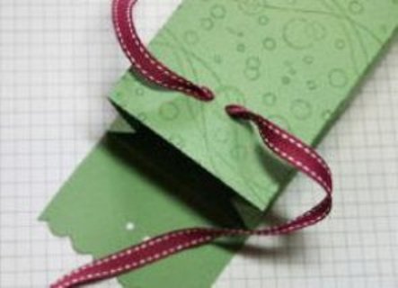 - నాలుగు రంధ్రాల గుండా ఒక రిబ్బన్ ద్వారా ఉత్పత్తికి రంగు పథకాన్ని (నా విషయంలో, ఎరుపులో) సరిపోలుతుంది మరియు విల్లుకు కట్టాలి. మరియు ఆ ముందు, కోర్సు యొక్క, పెట్టెలో మరియు గిఫ్ట్ దానం మర్చిపోతే లేదు!